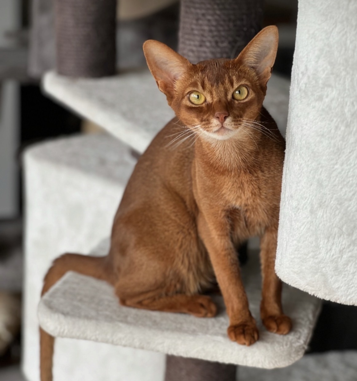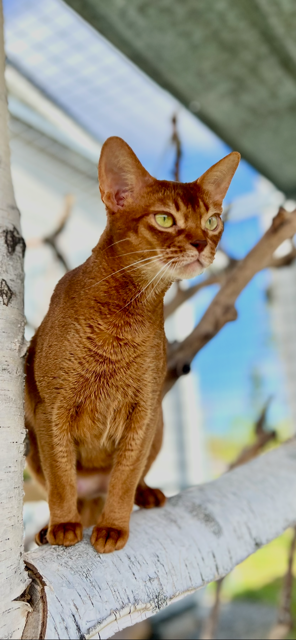 Svea har fått tre fina kullar, sin första kull 14/7 -22. Första en stor kull om 6 vackra kattungar, 2 honor och 4 hanar.4 sorrelhanar, en viltfärgad hane, en viltfärgad hona och en sorrelhona. En vacker kull och vi kan skriva under på att det var hålligång här hemma med alla sex i full fräs runt runt. Kull två föddes 21/5 -23. Tre sorrel och två fawnfärgade ungar blev det. En sorrelhane och två honor varav en av dem stannar kvar i vår avel, samt en fawnhona och en fawnhane. Hennes tredje kull såg dagens ljus 31/1-24. En sorrel hona, en vilt hane och en fawn hona.