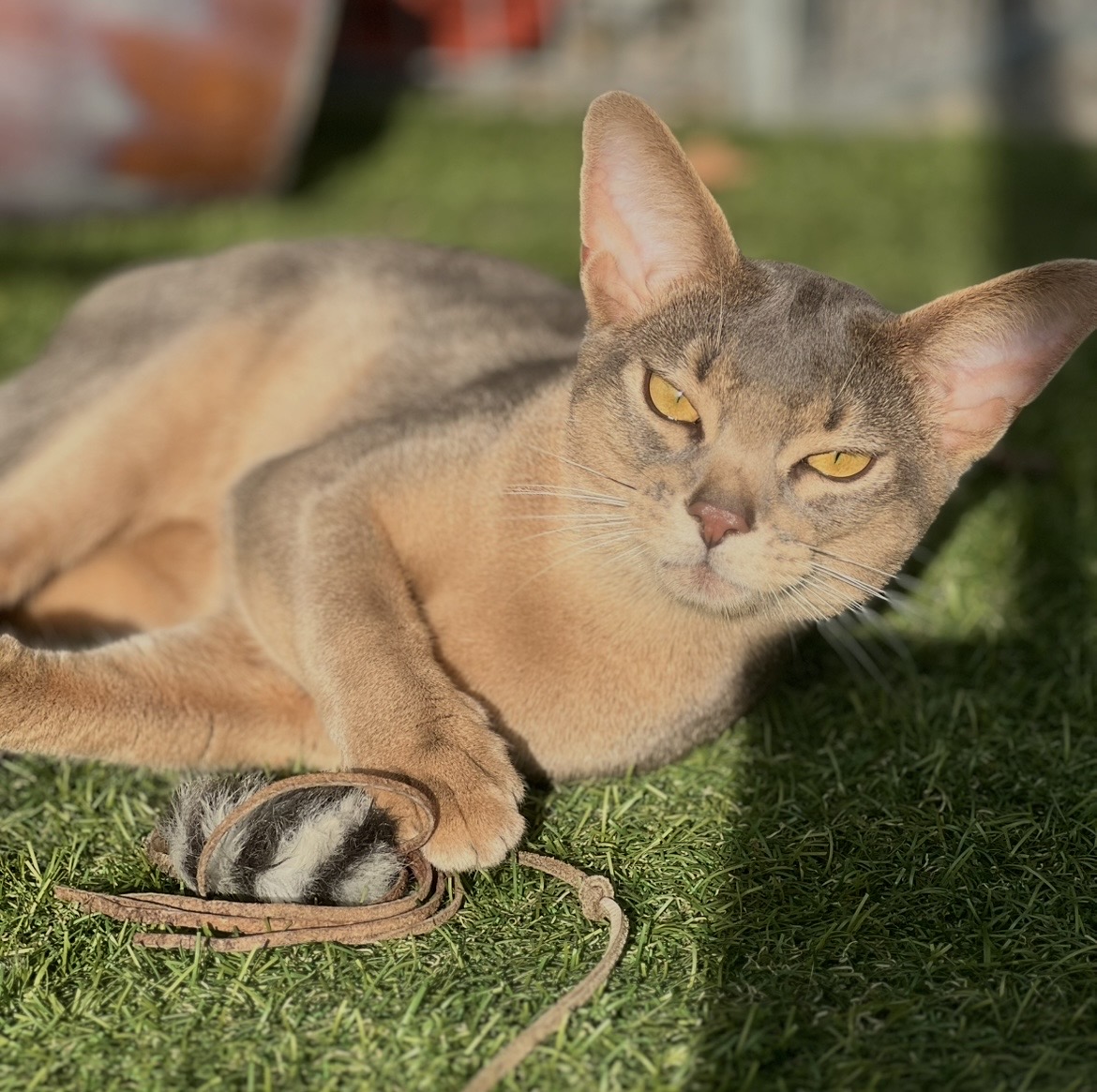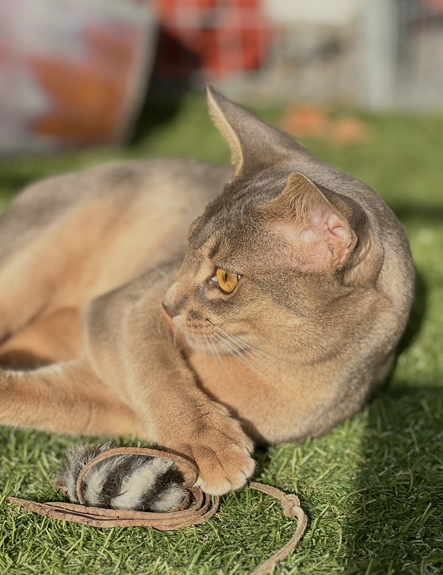 Dakar, eller "OVE" som vi kallar honom dagligdax är ett välkommet tillskott i vår avel. Dakar är född i Strasbourg i Frankrike då rådande läge i vår värld gjort att han och hans familj tyvärr inte kunnat bo i sin hemvist Ukraina. Dakar är en ung och harmonisk katt med härligt yttre och ett ljuvligt inre. Pälsen är mycket kort, jämt och fint tickad, varm i undertonen vilket bådar gott. Nyfiken, orädd och framåt precis som en Aby ska vara och han är verkligen en kärleksfull katt. Nära till lek och bus.
