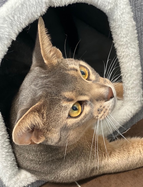 Dakar, eller "OVE" som vi kallar honom dagligdax är ett välkommet tillskott i vår avel. Dakar är född i Strasbourg i Frankrike då rådande läge i vår värld gjort att han och hans familj tyvärr inte kunnat bo i sin hemvist Ukraina. Dakar är en ung och harmonisk katt med härligt yttre och ett ljuvligt inre. Pälsen är mycket kort, jämt och fint tickad, varm i undertonen vilket bådar gott. Nyfiken, orädd och framåt precis som en Aby ska vara och han är verkligen en kärleksfull katt. Nära till lek och bus.